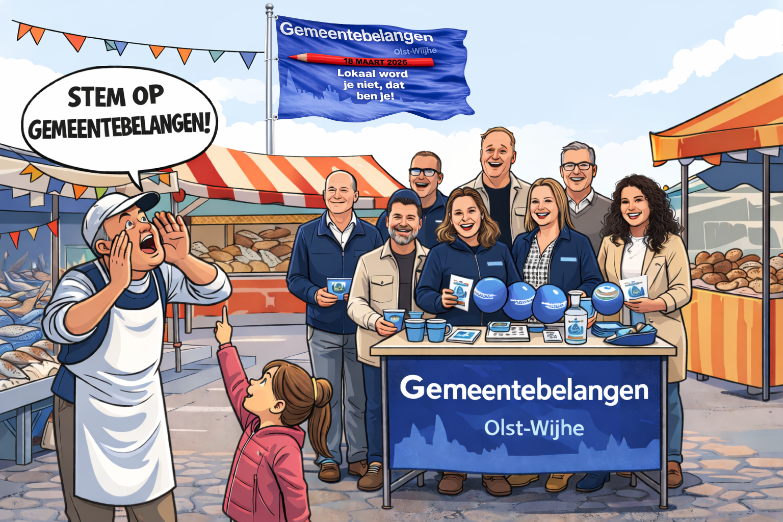 De campagneleider Gwen Harleman: "Op deze locaties staan mensen van het campagneteam maar ook van de fractie. Inwoners kunnen hier hun vragen kwijt over de lokale politiek in Olst-Wijhe. Niet één bepaald thema, wij laten het graag over aan de inwoners waarover ze op dat moment met ons willen spreken. "